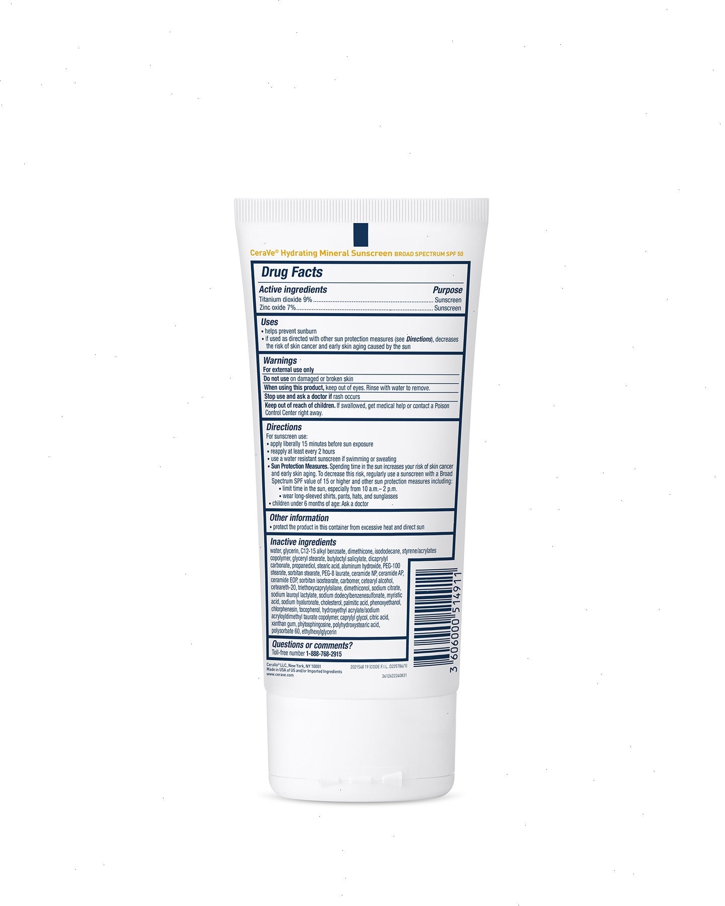 CeraVe Hydrating Mineral Sunscreen Body Lotion with Broad Spectrum SPF 50 is a 100%-mineral sunscreen with titanium dioxide and zinc oxide that forms a protective barrier on your skin to help reflect UVA and UVB rays without irritating sensitive skin.